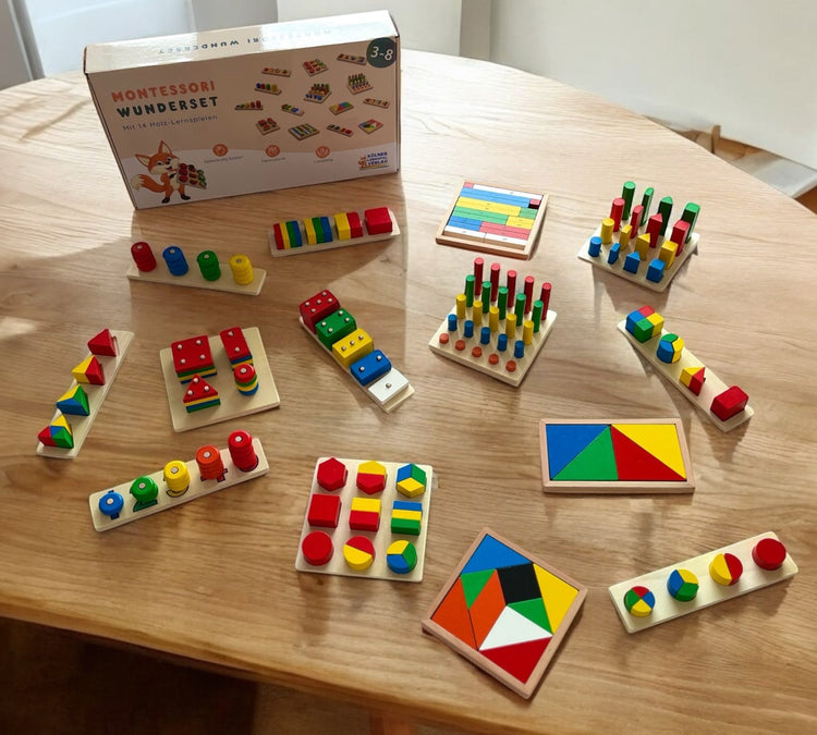 Jetzt neu: Mein Montessori Wunderset mit 14 Holz-Lernspielen