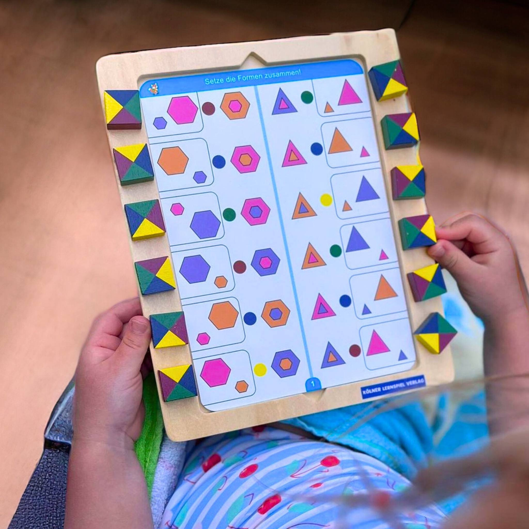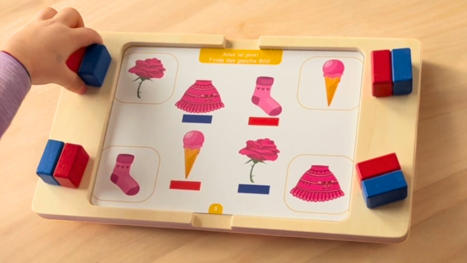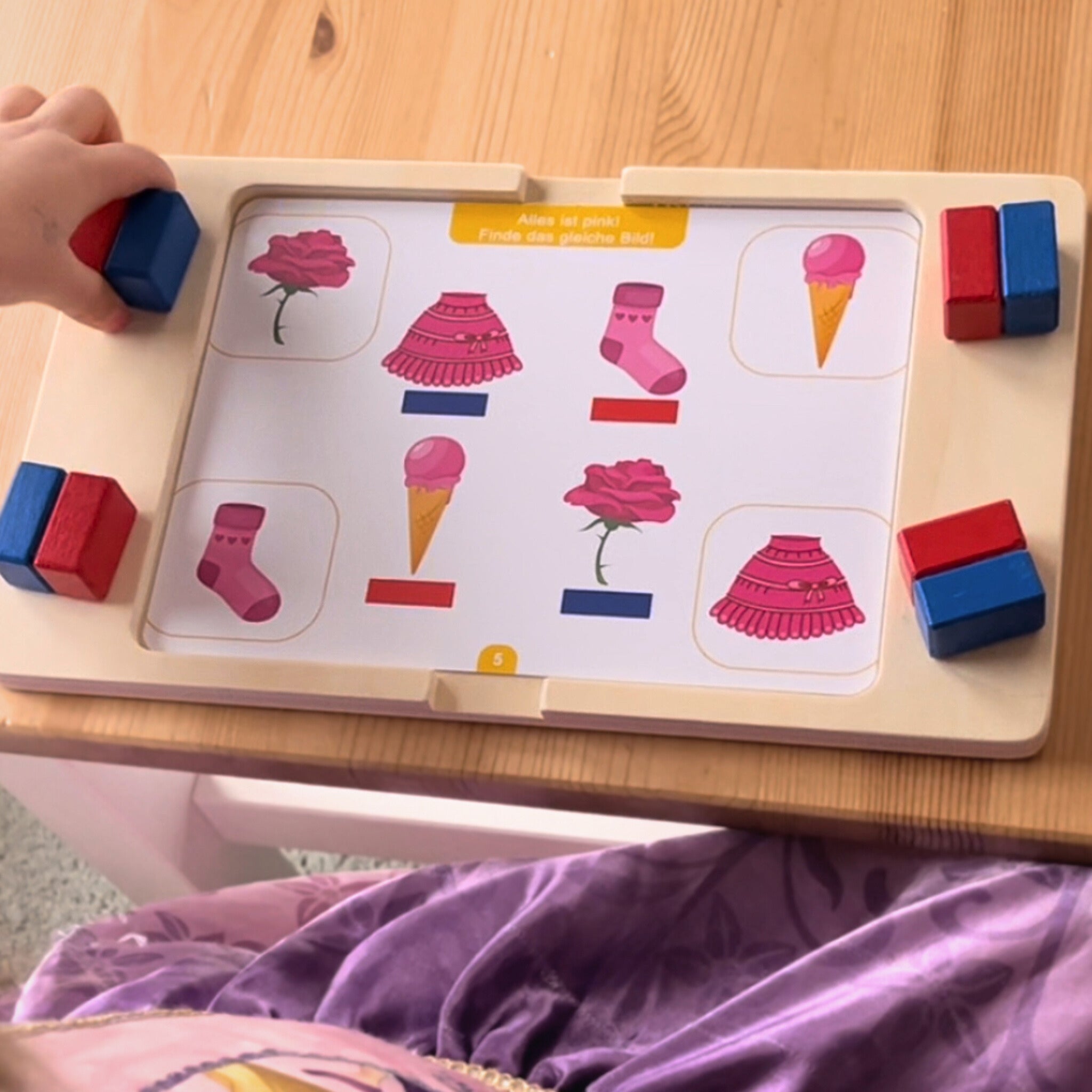 Discover nowYour perfect mix of stable wooden board & diverse learning cards to promote concentration & perception! Turn the wooden pieces to one of the 4 colors to match the task. Great fun, alone or in pairs!