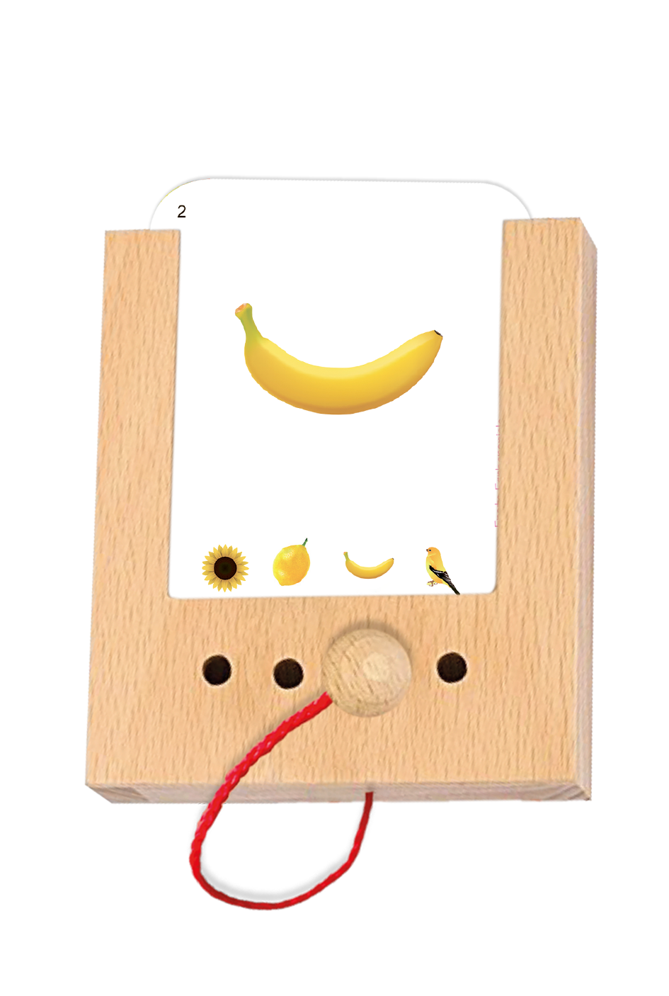 - Stecke den Holzstift zur richtigen Antwort ins Loch.