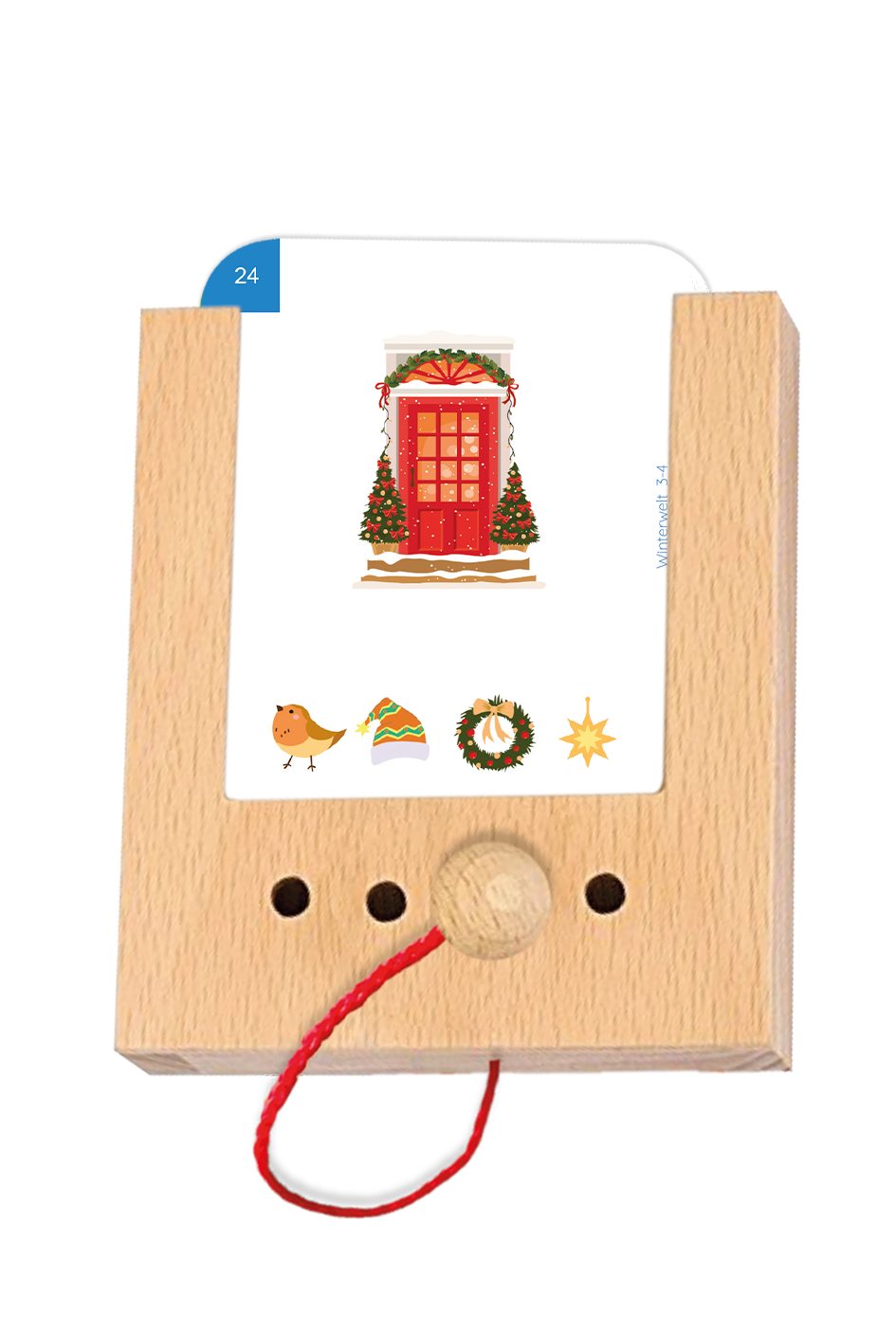 - Stecke den Holzstift zur richtigen Antwort ins Loch.
