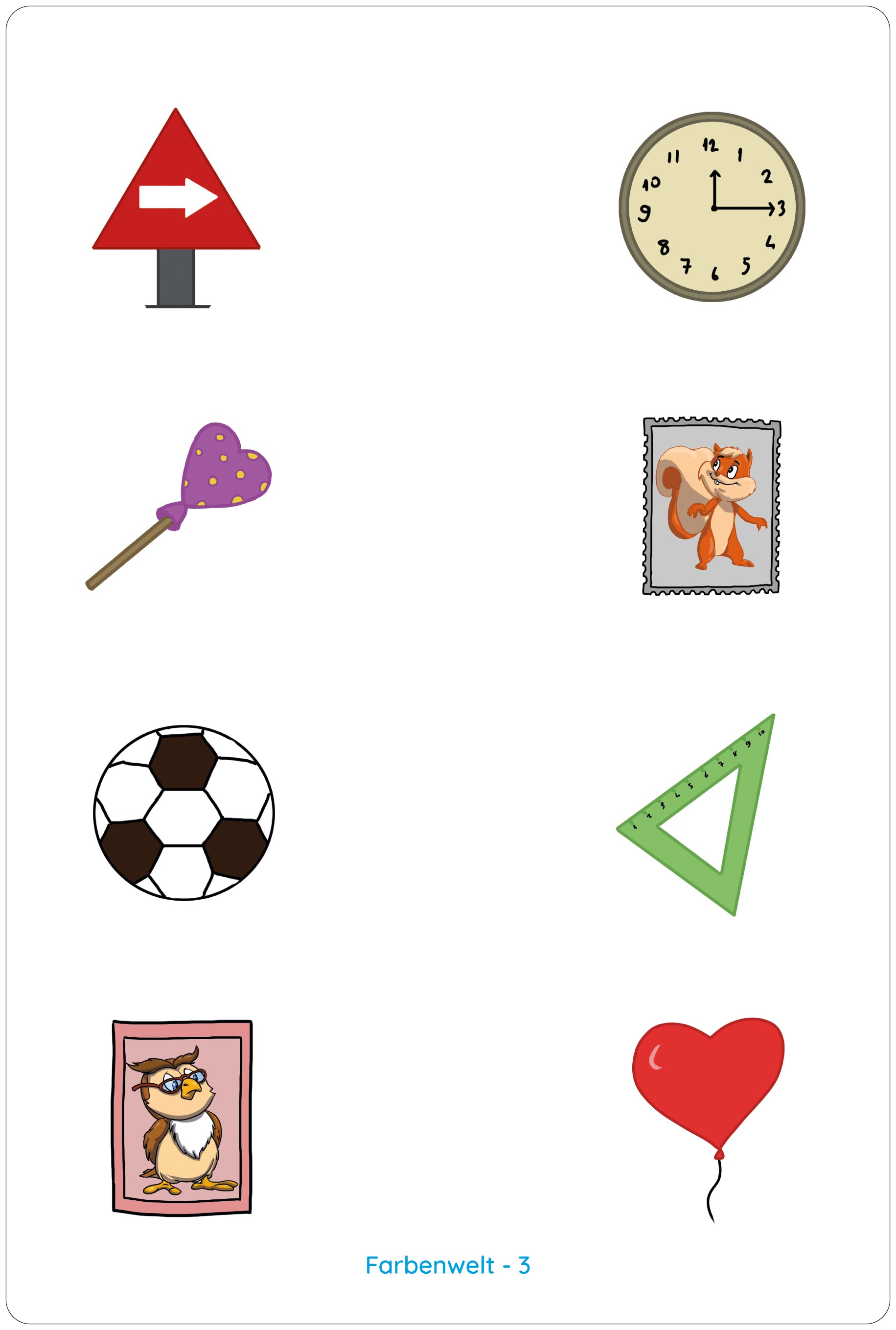 - Connect the illustrations on the left side of the card to the matching pictures on the right by stretching the rubber bands over the wooden pegs.