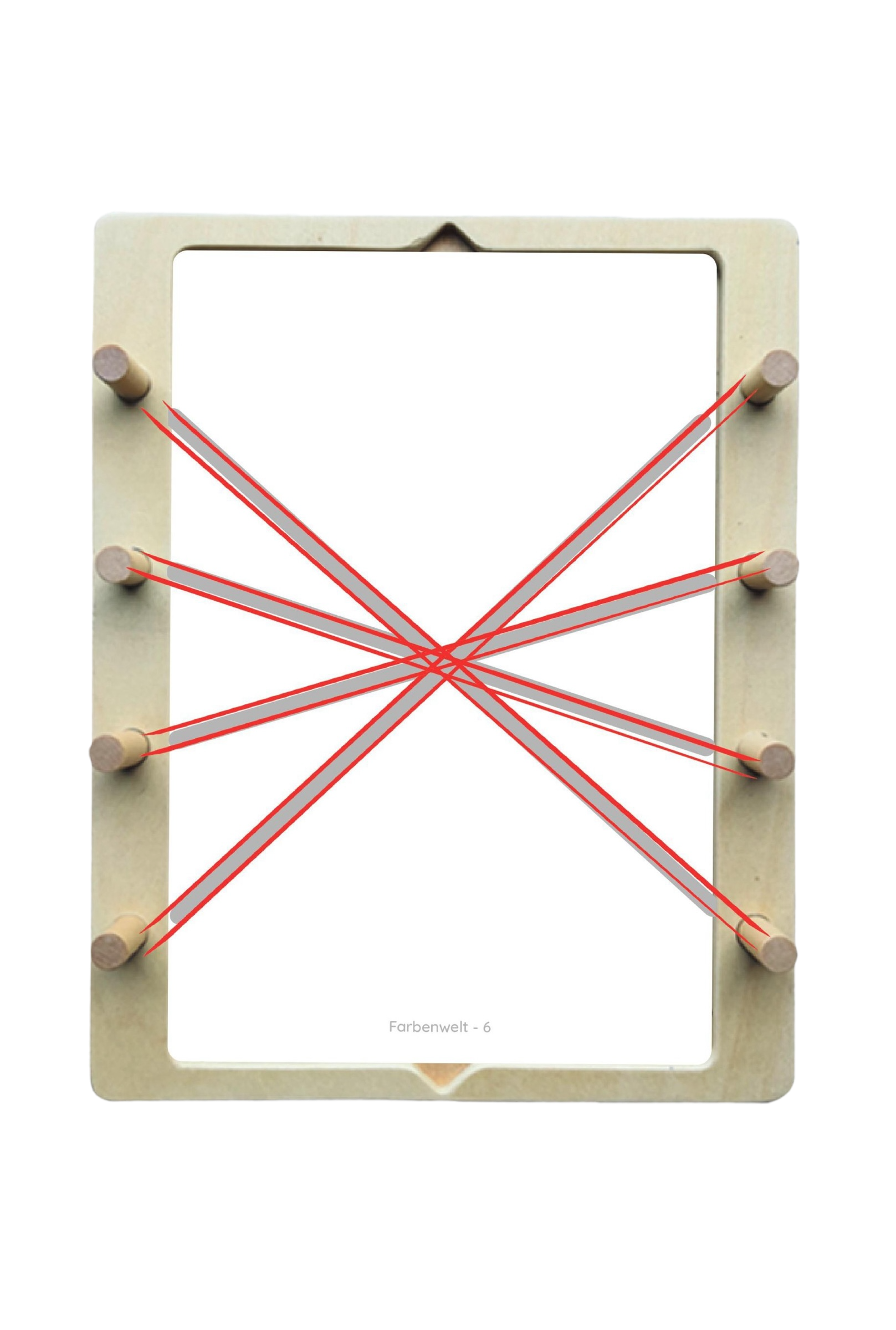- Once you've tightened all the rubber bands, pull out the card and turn it over. Slide them back into the wooden frame to see the back with the self-control.