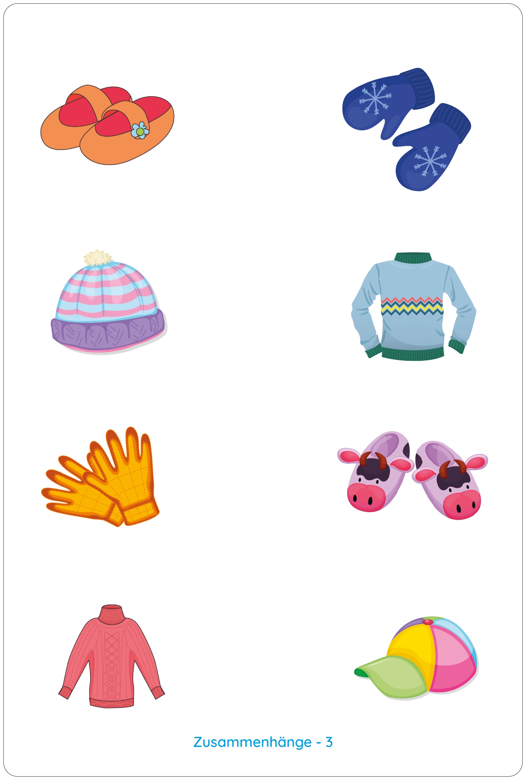 Discover a world of connections and relationships with our Connections deck. The 15 exercise cards challenge children to see the connections between different objects and to make logical connections. From colorful clothing to fruit worlds - logical thinking and powers of observation are encouraged in a playful way.