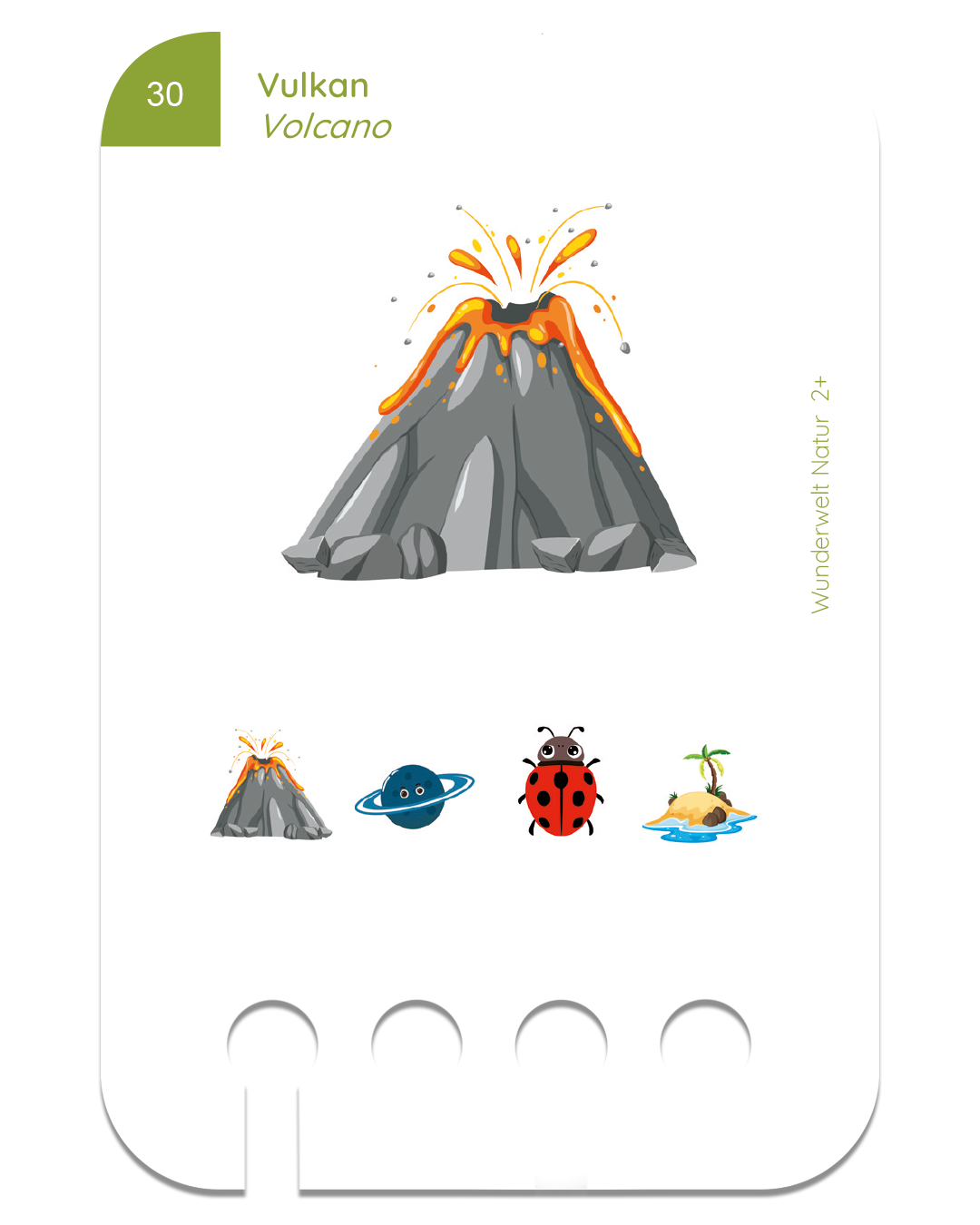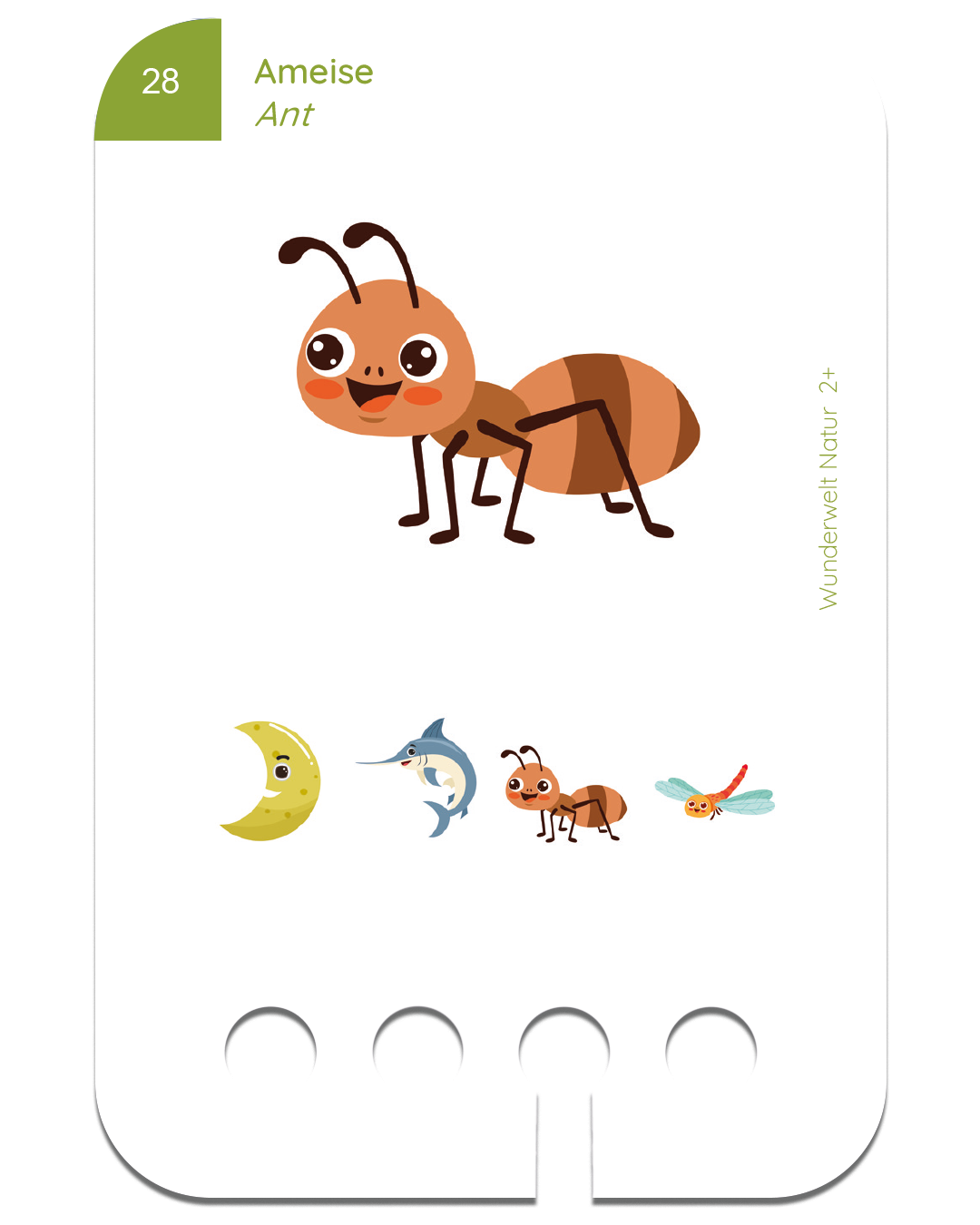 6 selbsterklärende Kartensätze ab 2-3 Jahren. Ein Kartensatz besteht aus 24 Karten mit 48 doppelseitig bespielbaren Übungen:
