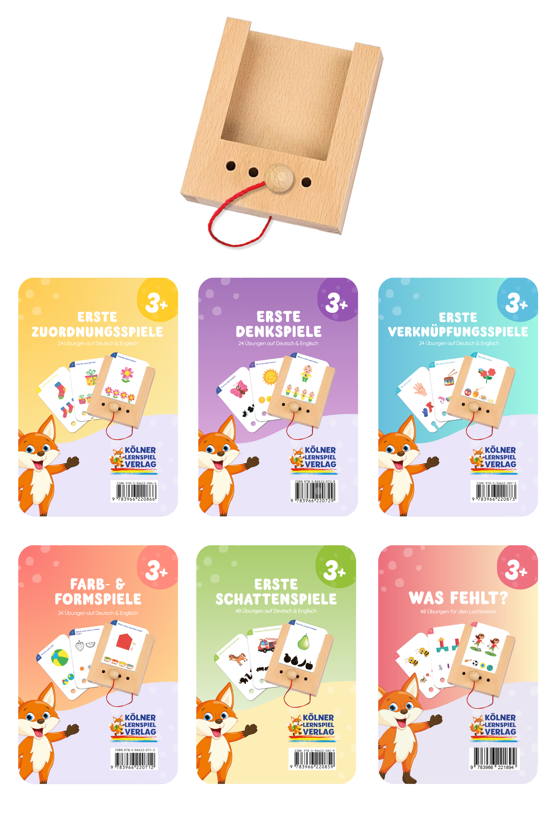 The hole box starter package from 3 years offers a unique educational game for early childhood development. With the perforated box, children combine fun and games and can playfully promote logical thinking, language comprehension and concentration. The difficulty of the tasks increases with the number of cards, making it an exciting challenge for children.