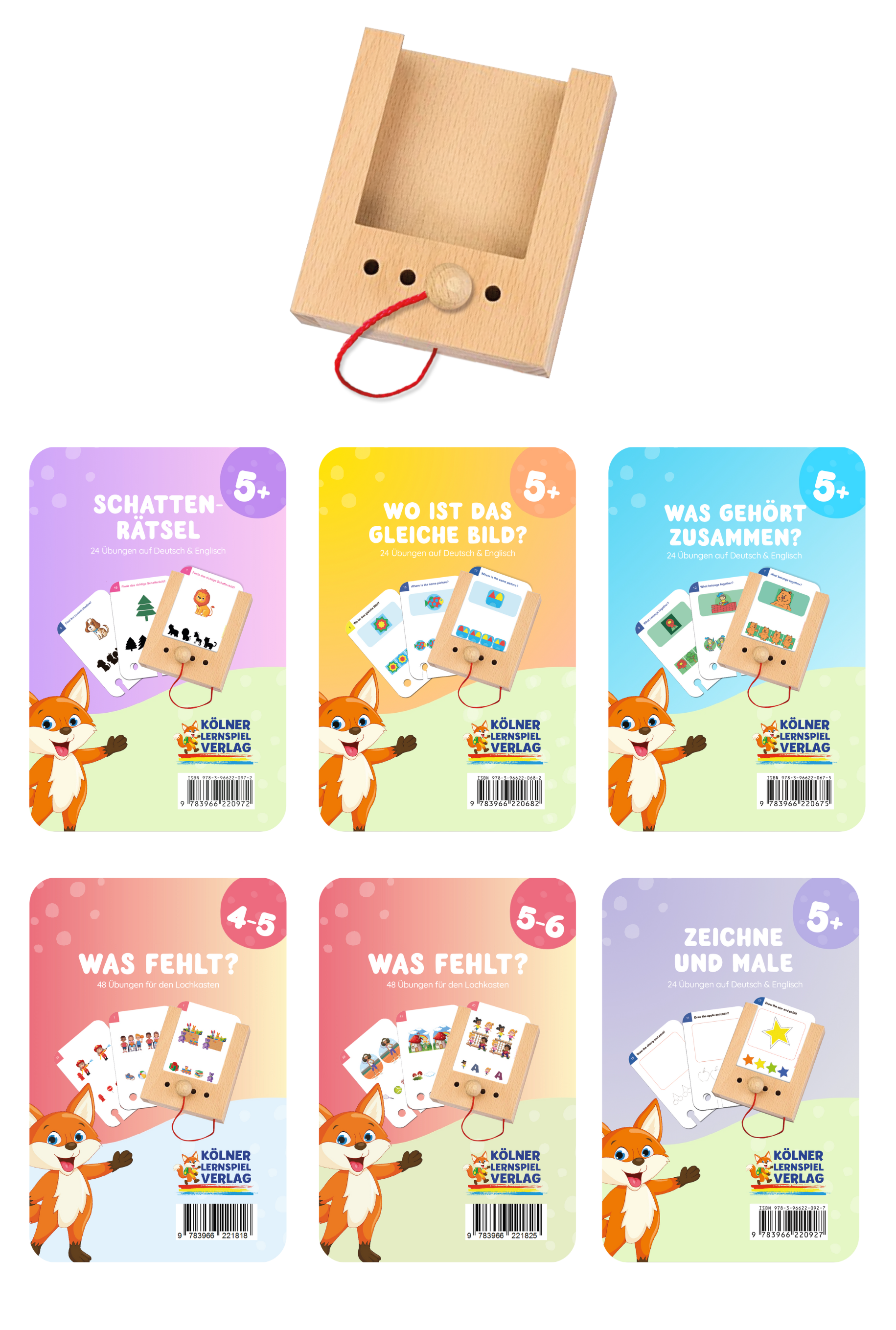 The hole box starter package from 5 years offers a unique educational game for early childhood development. With the versatile card decks, they can