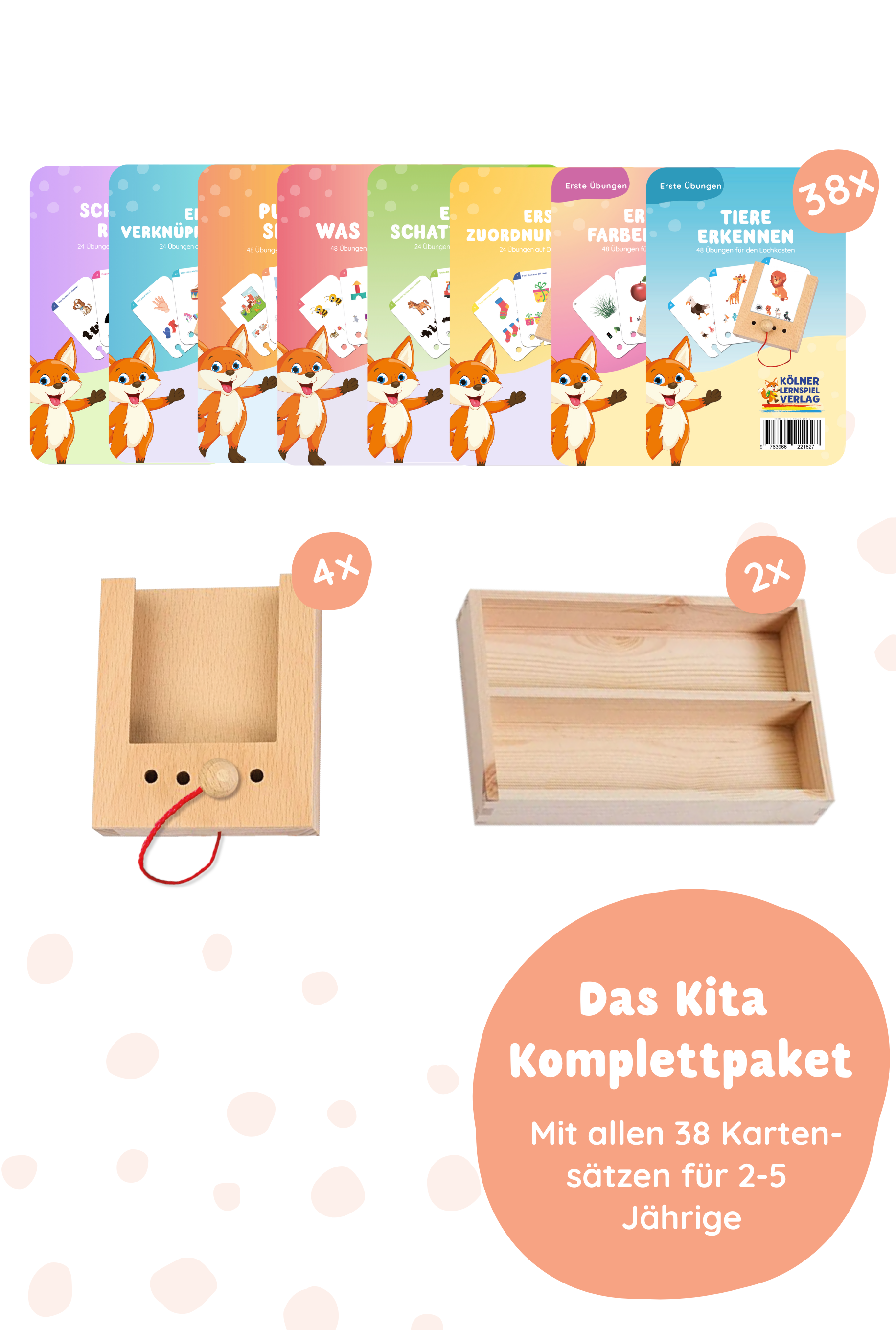 Das Kita Komplettpaket für 2-5 Jahre: 38 Kartensätze, 4 Lochkästen, 2 Aufbewahrungskisten