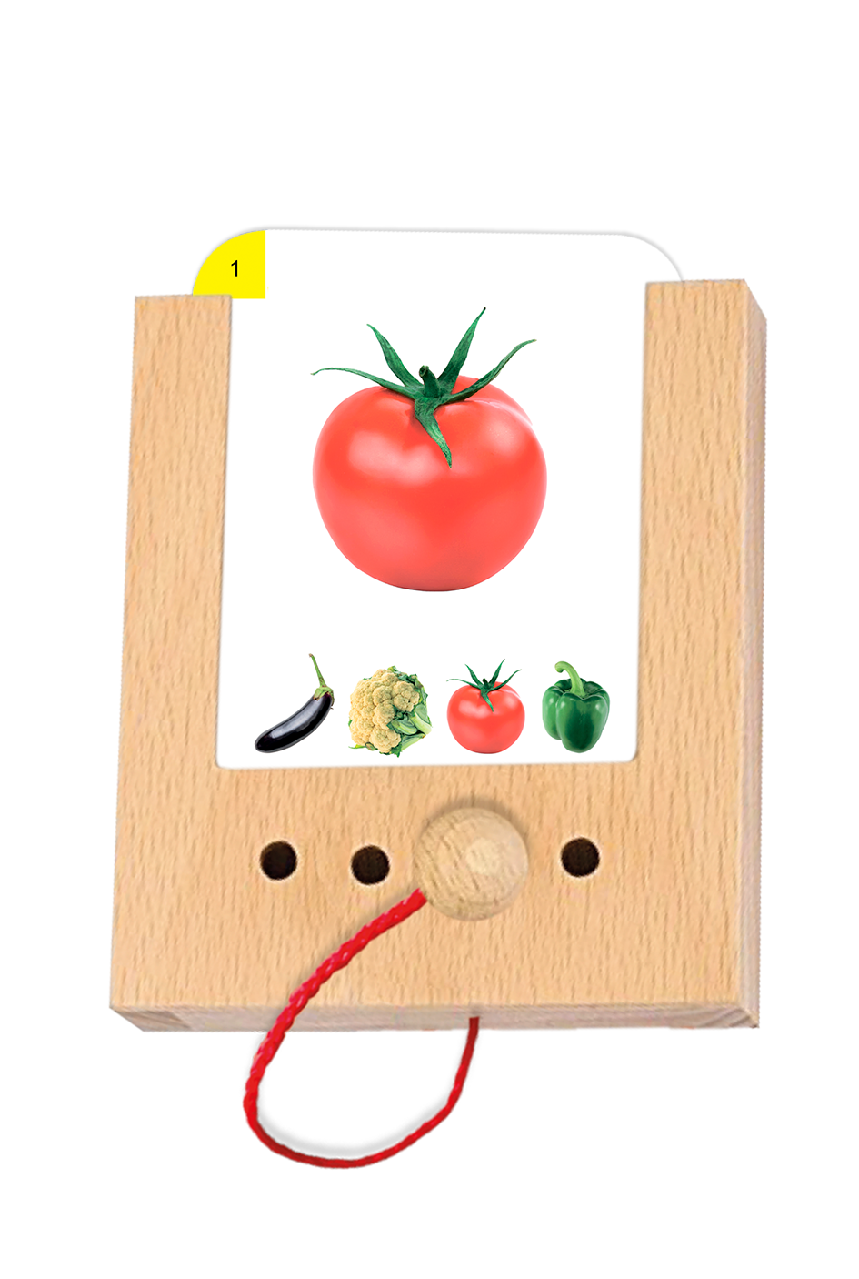 - Stecke den Holzstift zur richtigen Antwort ins Loch.