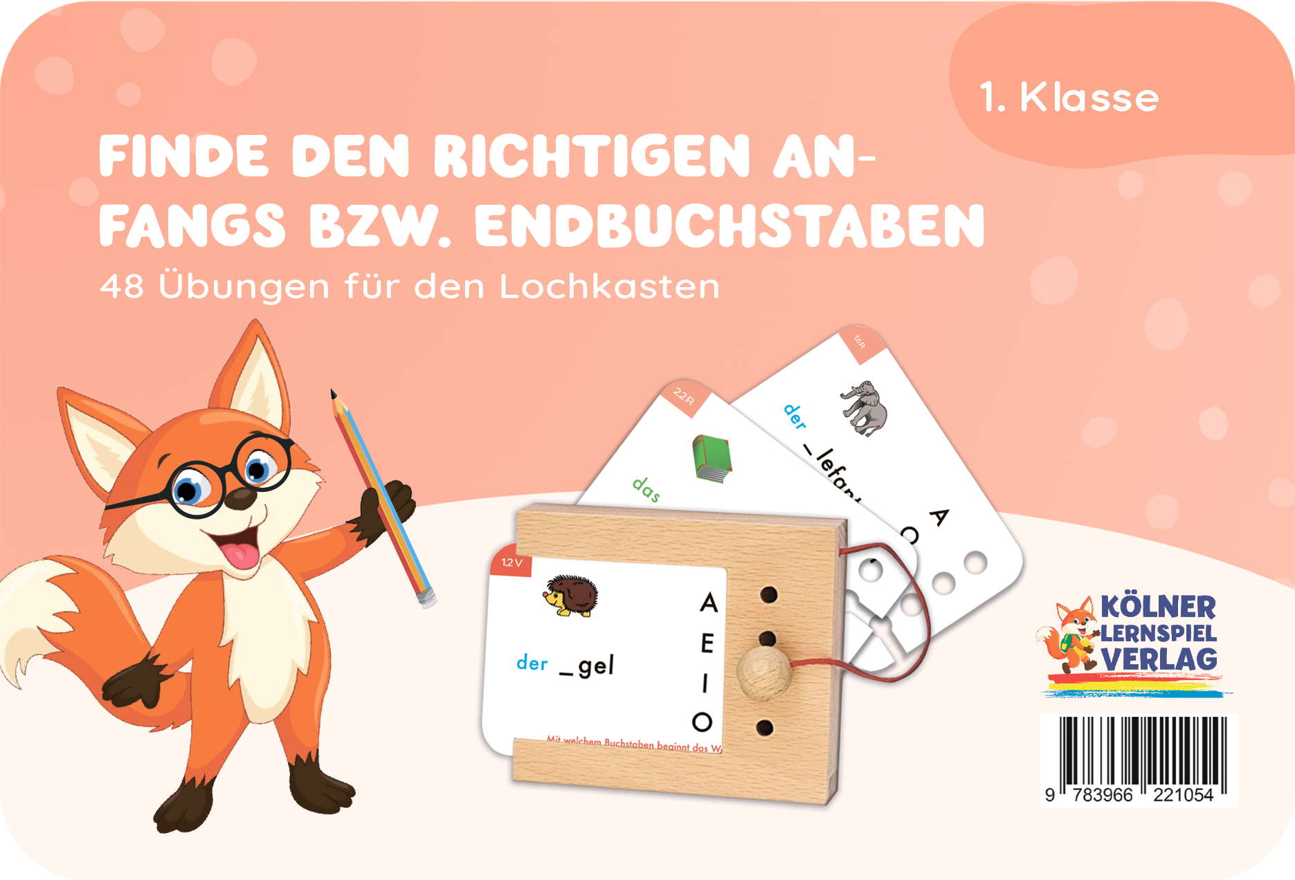 Unser Kartensatz "Finde den Anfangs- und Endbuchstaben" für den Lochkasten bietet eine spannende Lernerfahrung für Schülerinnen und Schüler der 1. Klasse. Mit insgesamt 48 Übungen (24 doppelseitig bedruckte Karten) werden gezielt die Fähigkeiten zum Erkennen und Zuordnen von Anfangs- und Endbuchstaben trainiert. Dabei sind die Wörter mit entsprechenden Bildern illustriert, um die visuelle Verbindung zu unterstützen. Die Schwierigkeit der Aufgaben steigt mit der Kartenzahl, was es zu einer spannenden Herausforderung für Kinder macht.