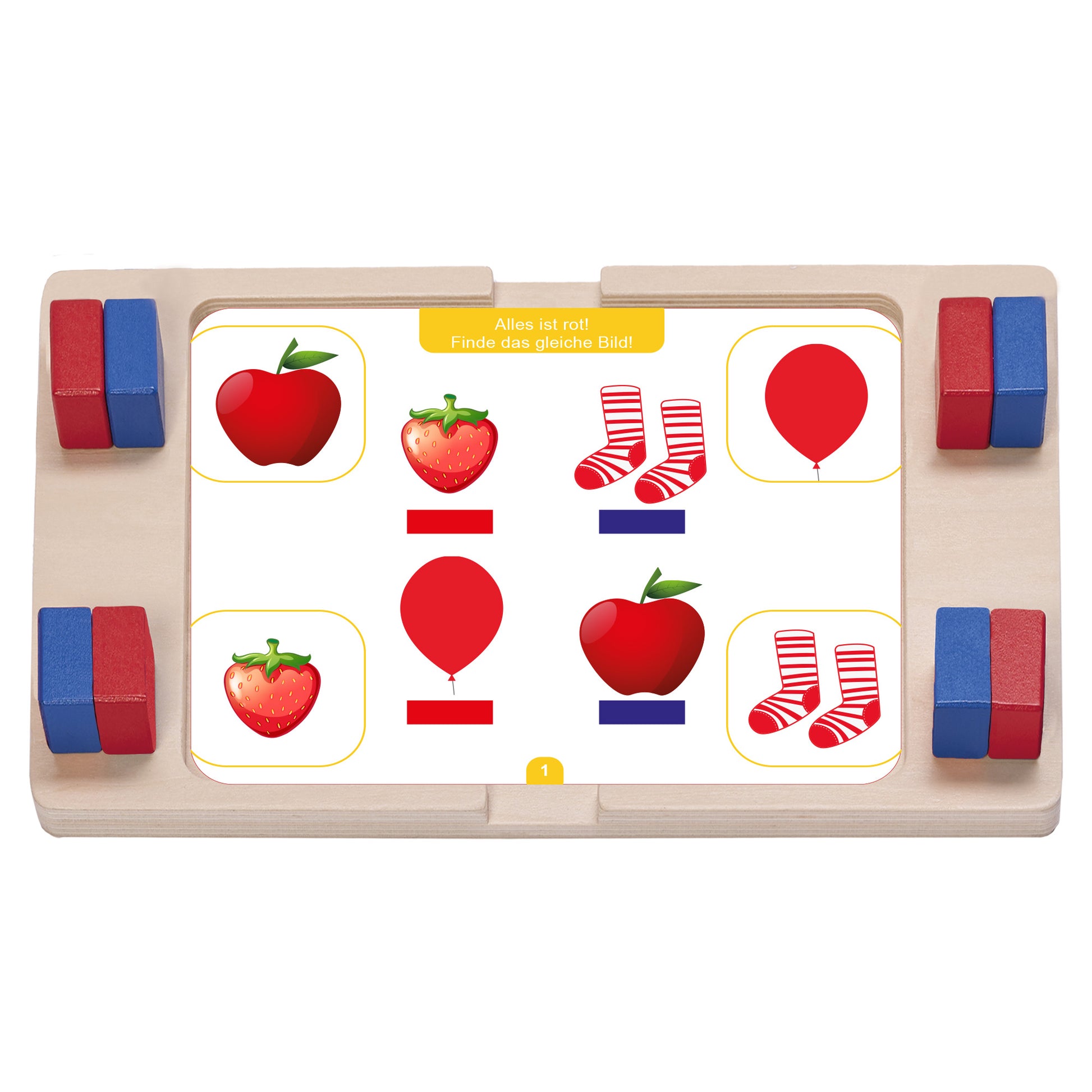 Dieses Set beinhaltet den Foxino Holzrahmen mit dem Kartensatz "Ich lerne die Farben"