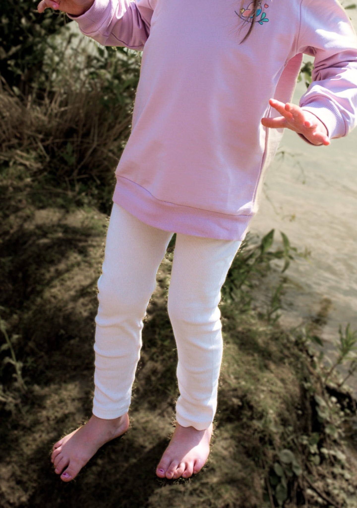 Sophia mit der ecru-farbenen Leggins ist 5 Jahre alt, 110 cm groß und trägt Größe 110/116. Wenn Du unsicher bist, welche Größe Du wählen solltest, empfehlen wir Dir tendenziell die kleinere Größe. Bei Fragen stehen wir Dir gerne per Mail oder Instagram zur Verfügung. Zögere nicht, uns zu kontaktieren!