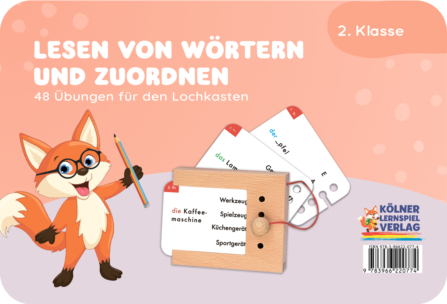 Kartensatz für den Lochkasten. Enthält 24 doppelseitig bedruckte Lernkarten mit insgesamt 48 abwechslungsreichen Übungen. Speziell für die 2. Klasse konzipiert und ideal für Kinder im Alter von 7-8 Jahren.